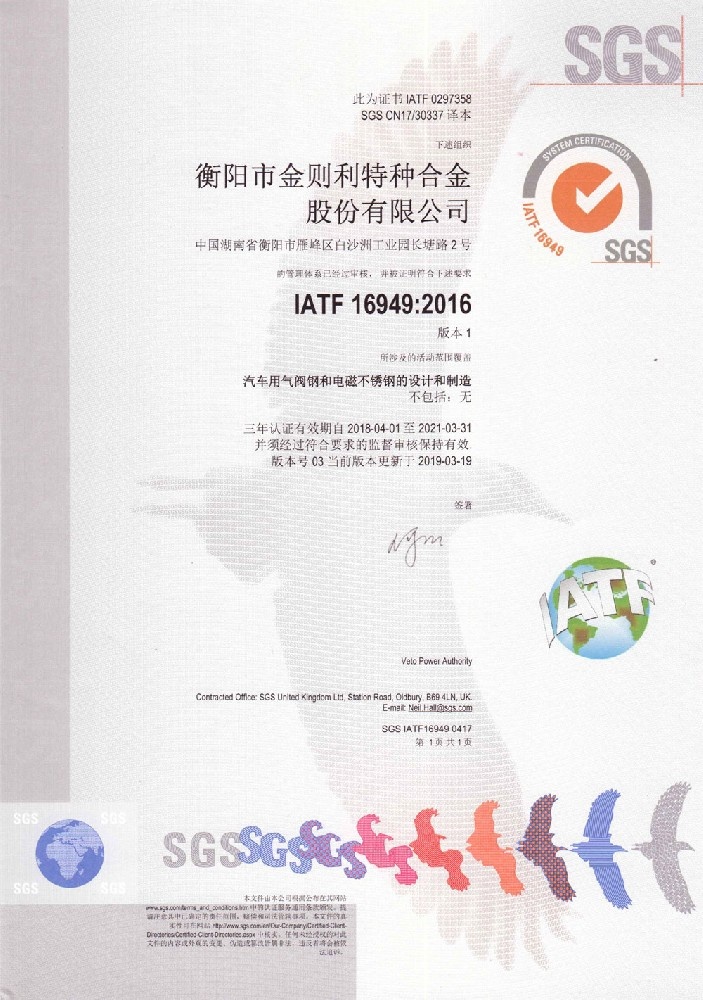 衡陽市金則利特種合金股份有限公司成立于一九九九年十二月,注冊資本人民幣兩千兩百萬元。注冊地址:衡陽市雁峰區(qū)白沙洲工業(yè)園長塘路2號。公司主營耐蝕軟磁合金,為湖南省高新技術(shù)企業(yè)。公司自成立以來,即致力于耐蝕軟磁合金的研發(fā)。 研制出的JL-31(00Cr13si2Pb)、JL-31B(00Cr13si2)、JL-31BS(00Cr13Si2S)、JL-37B(0Cr17Si2)、JL-37(0Cr17···